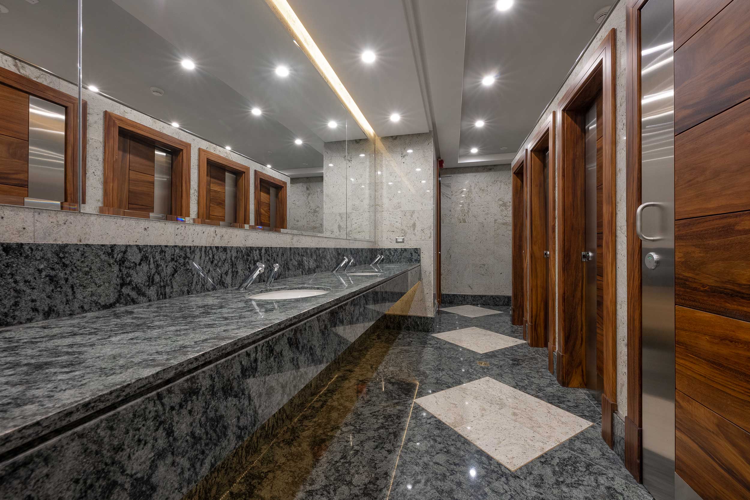 - Gimnasio corporativo de 450 m², estacionamientos de bicicletas con duchas y servicios sanitarios.
