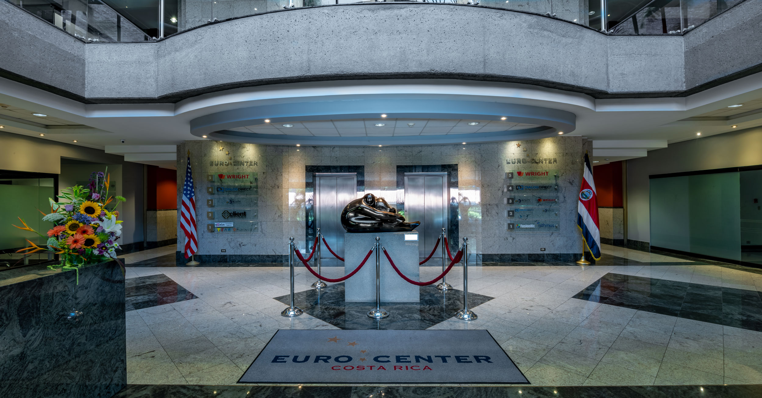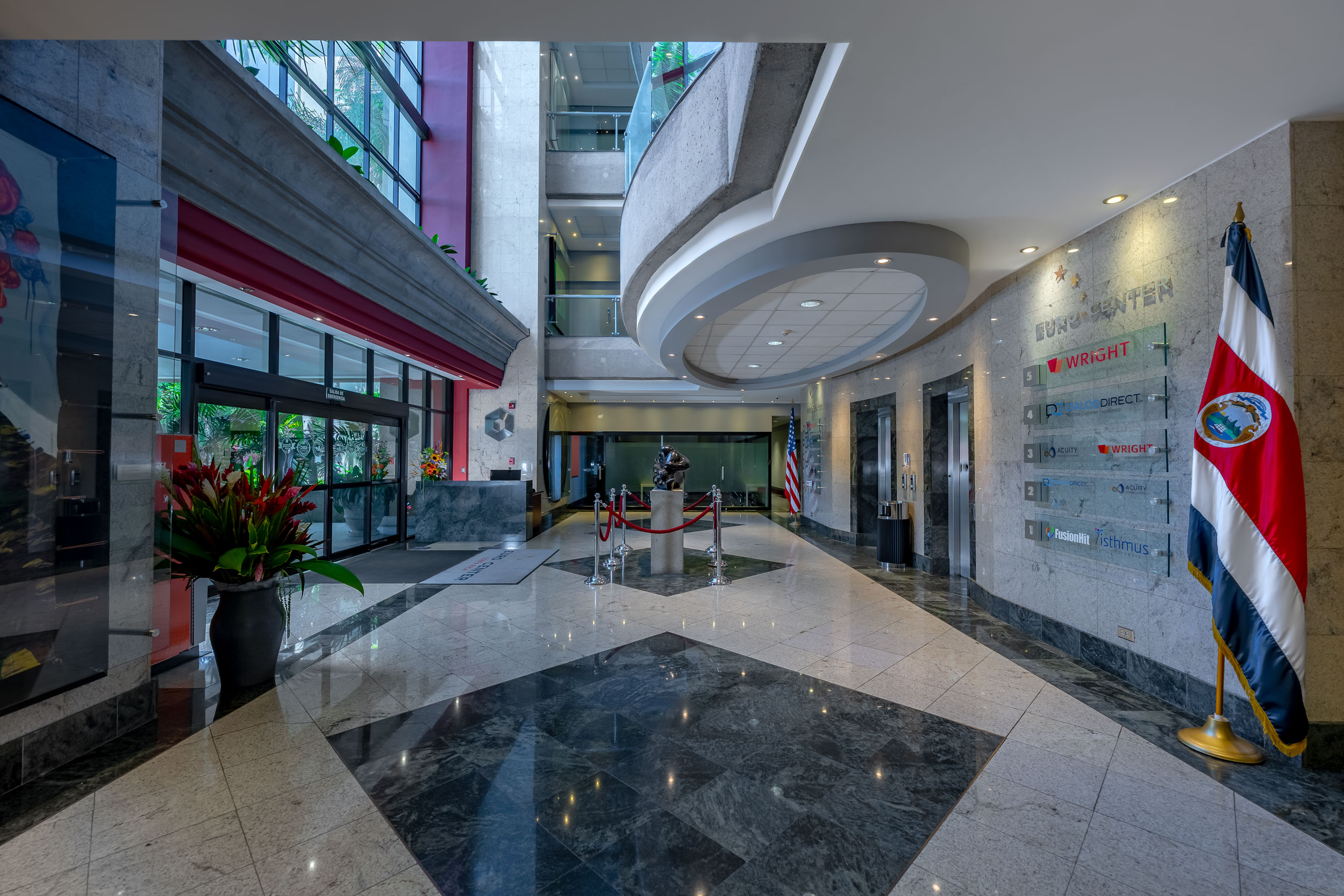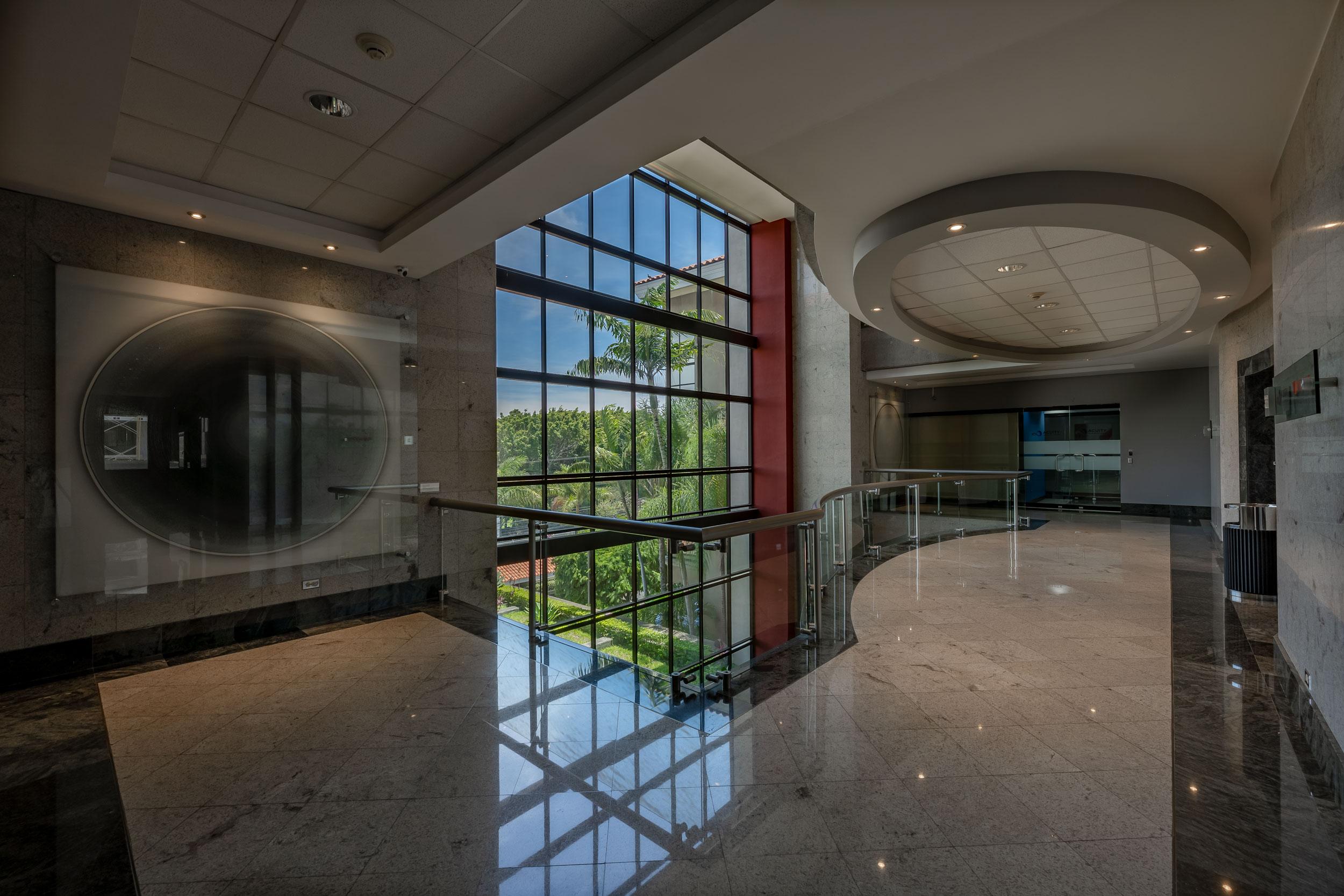 Elegant and modern, six stories high, with a centralized reception featuring important artwork, paintings, and sculptures by renowned artists such as Fabián Marcaccio, José Bedia, Robert Scrasbell, Hansy Lizano, and Jorge Jiménez Deredia.