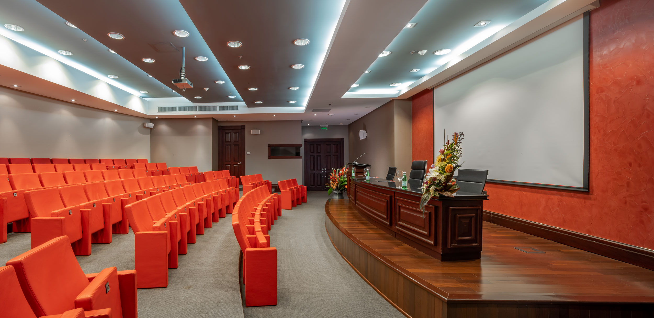 The first story also houses the Euro Business Center (EBC), which is made up of five elegant meeting rooms, two training rooms, a large 94-seat auditorium, the English-style Nexus Wine Bar, and the Frontaura Dining Room, exclusively for directors and managers.