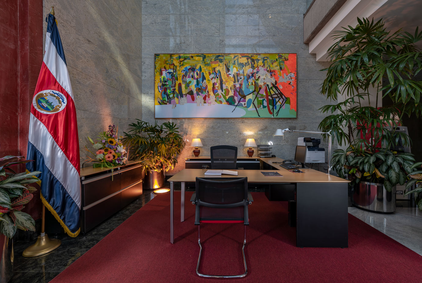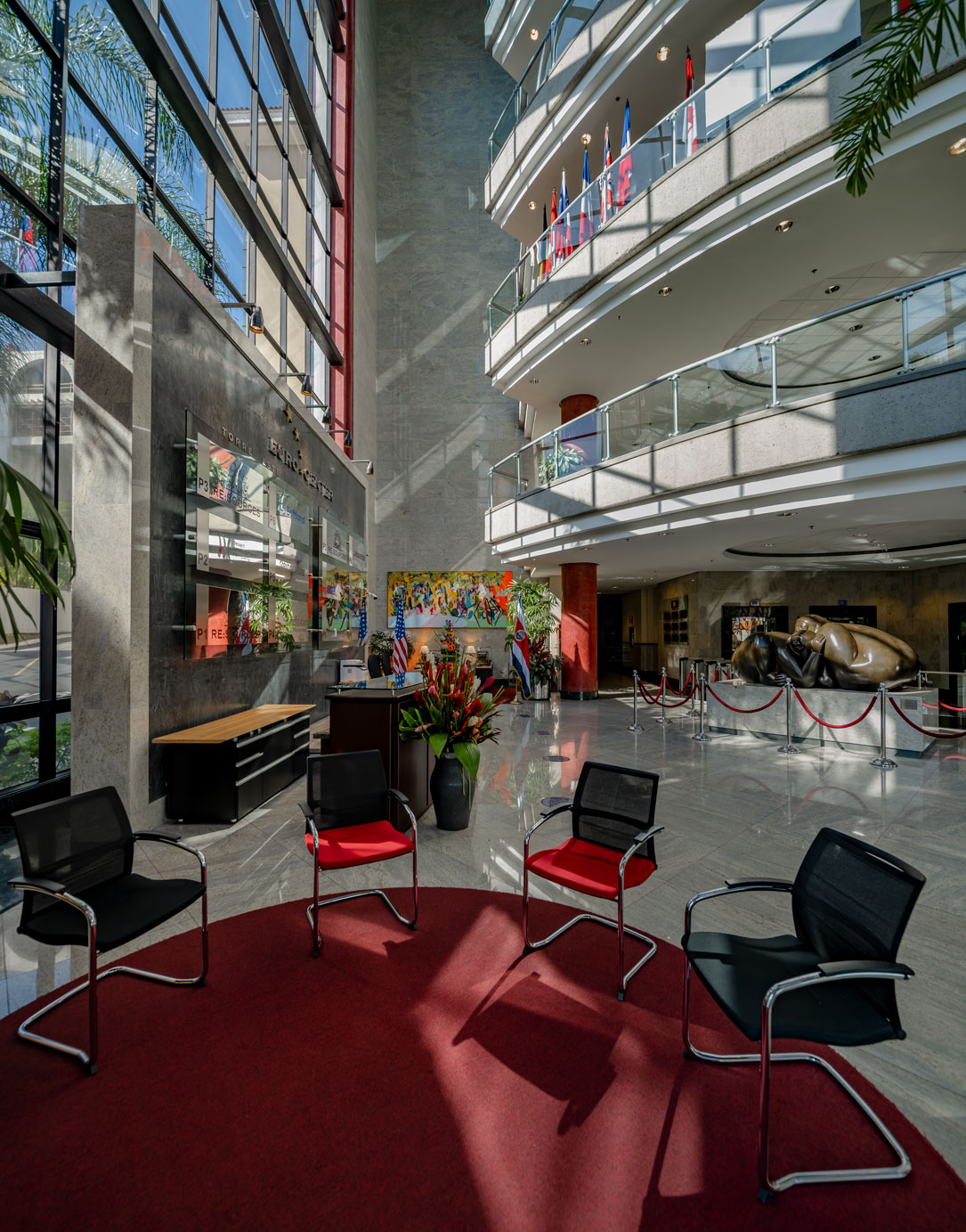 Elegant and modern, six stories high, a centralized reception, state-of-the-art turnstiles, important artwork, paintings, and sculptures by renowned artists including Federico Herero, Hansy Lizano, Jorge Jiménez Deredia, and Kcho, along with master works from Jorge Gallardo, Manuel de la Cruz, and Leonel González.